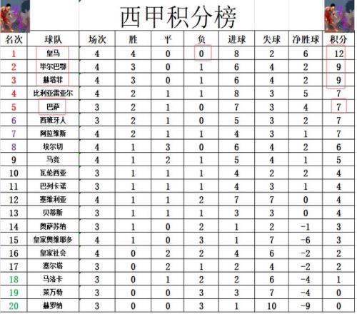 積分榜方面,今天畢爾巴鄂競技輸了球,這樣的話本賽季就只剩下皇馬一支全勝球隊(duì),皇馬3分優(yōu)勢繼續(xù)領(lǐng)跑,畢爾巴鄂競技暫時(shí)還是排在第2,赫塔菲贏球后超過巴薩,比利亞雷亞爾,升至第3。馬競終于是拿到賽季首勝,他們暫時(shí)升至第9。