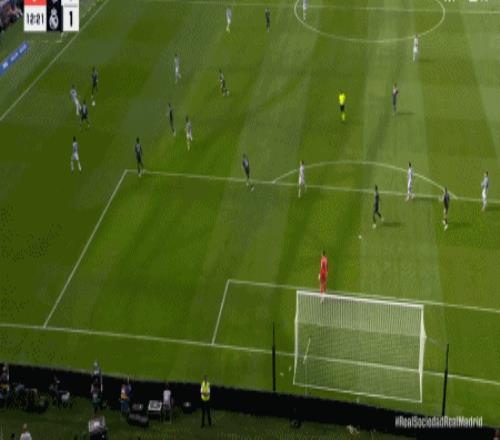皇馬是前三輪唯二保持不敗的兩支球隊(duì)之一,今天作客阿諾埃塔球場,皇馬延續(xù)著贏球勢頭。開場后皇馬的進(jìn)攻就很高效,僅僅1分鐘,皇馬快速反擊,姆巴佩突入禁區(qū)右側(cè)倒三角回傳,居萊爾禁區(qū)線上推射空門得手,只是姆巴佩插上時(shí)稍稍越位在先,進(jìn)球被吹掉。第11分鐘,皇家社會(huì)前場右側(cè)進(jìn)攻受阻,洛佩茲拿球選擇回傳,不料姆巴佩高速插上,完全甩開皇家社會(huì)的兩個(gè)中后衛(wèi)卡爾跟祖貝迪亞將球斷走,姆巴佩突入禁區(qū)內(nèi)一步單刀冷靜兜射,皮球 應(yīng)聲入網(wǎng),皇馬1:0取得良好開局。